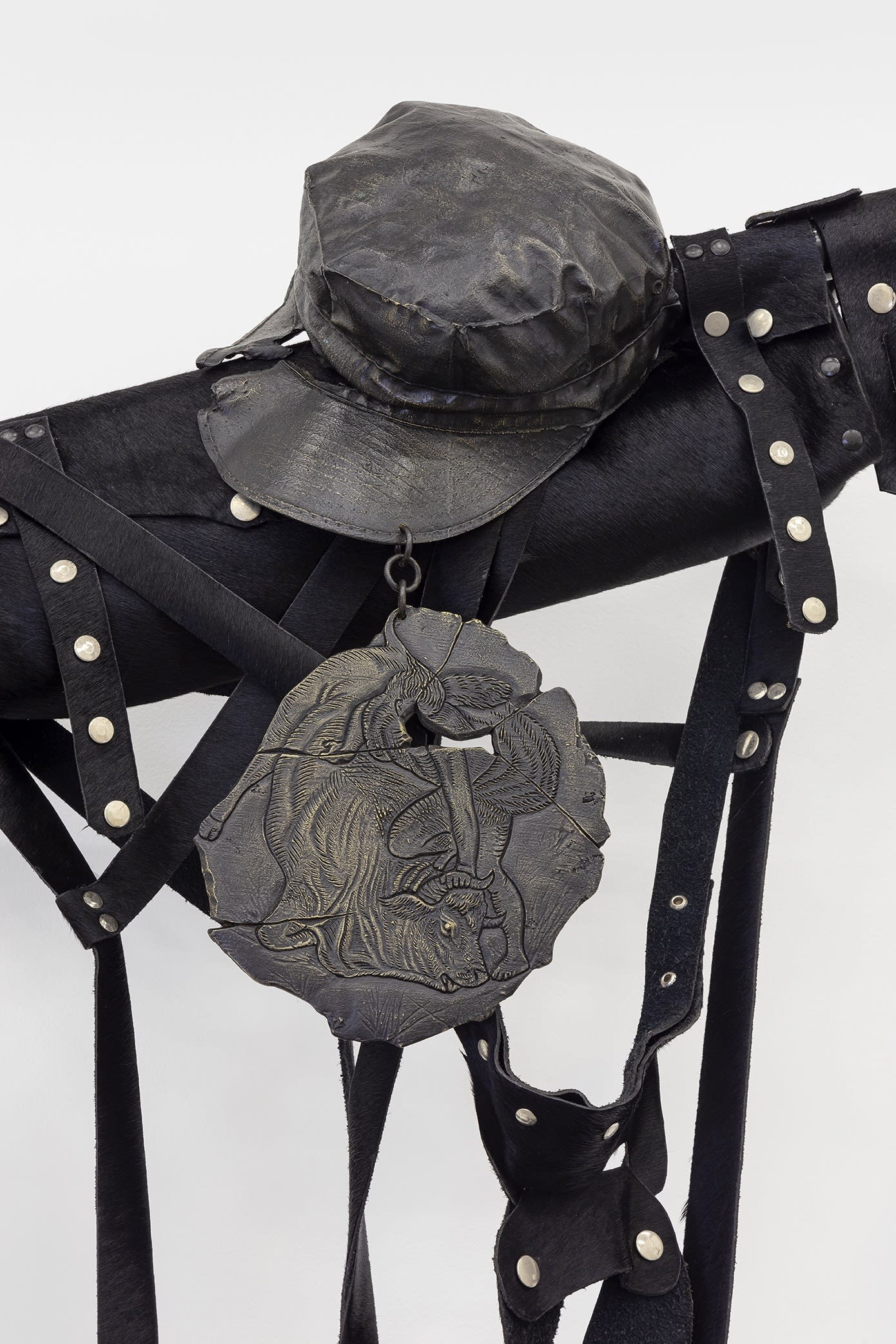 [CASA TRIÂNGULO IS PLEASED TO PRESENT BRONZE, LEATHER, GOLD, BLOOD, PAUL SETÚBAL'S FIRST SOLO EXBIBITION AT THE GALLERY. The materials that compose the title and works at the exhibition show a country historically devastated by promises of progress and that perpetuates, in its system of power and formation, regimes of violence and authoritarianism. Containing historical references and everyday life, the exhibition is both a look at the past and the present.]